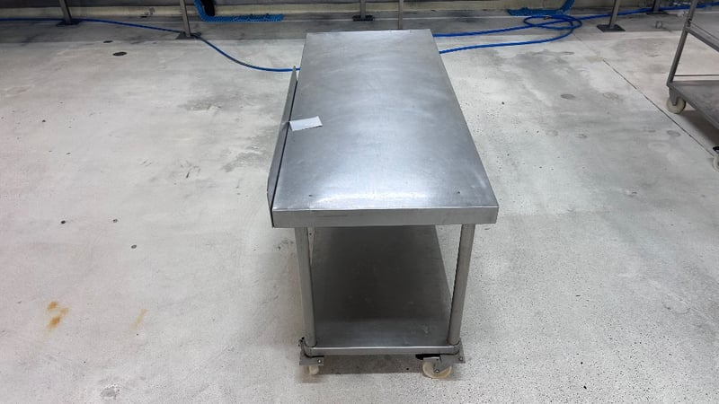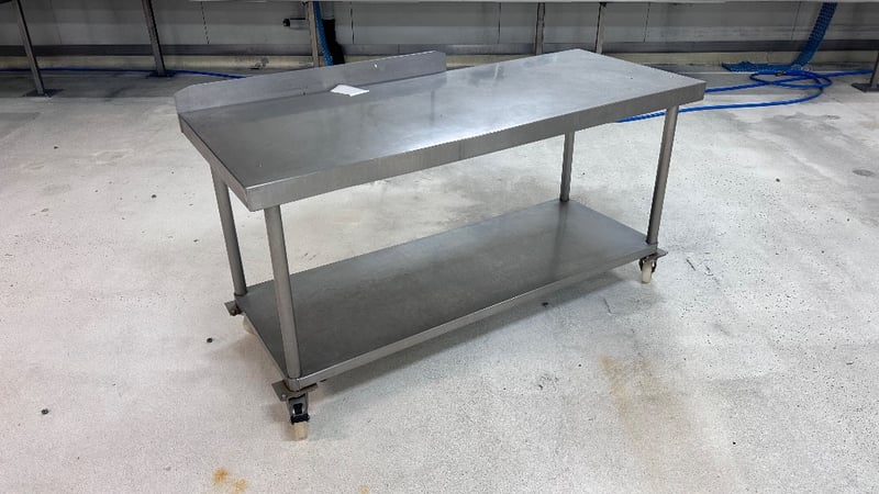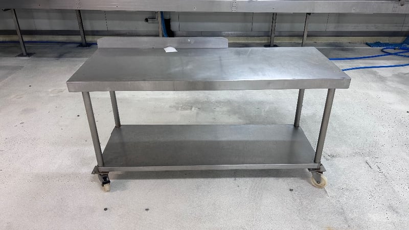 Work Bench, Stainless Steel Work Bench, On Wheels.Dimensions: H:85cm x W:160cm x D:60cm.Note: Items In Background Not Included.