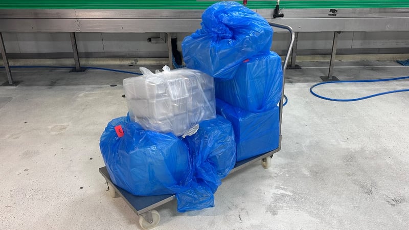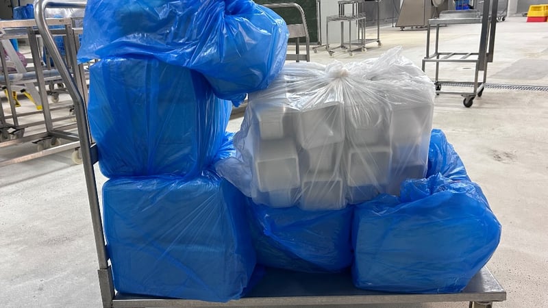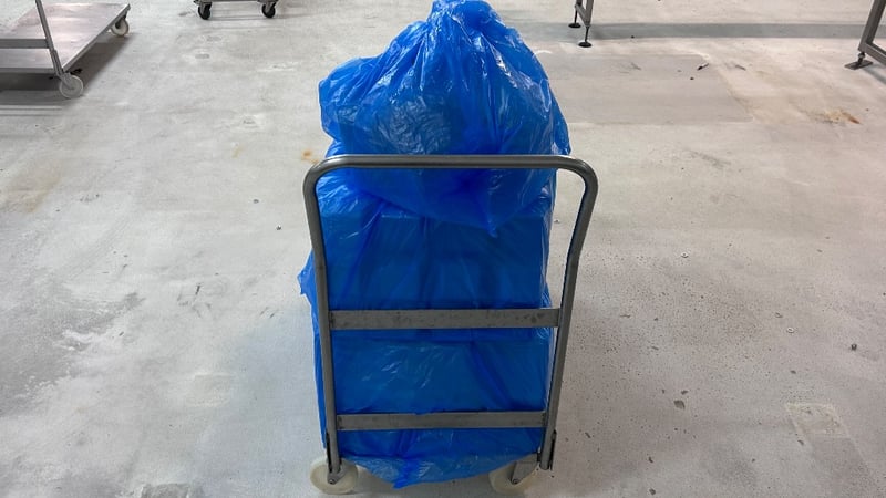 Trolley, Stainless Steel, Flat Bed Trolley, Including Various Food Containers.Dimensions: H:105cm x W:120cm x D:56cm.Sold As Lot.Note: Items In Background Not Included.