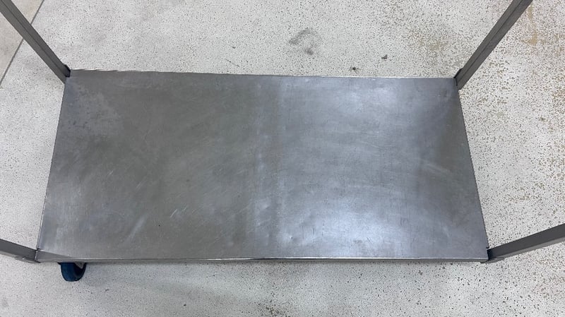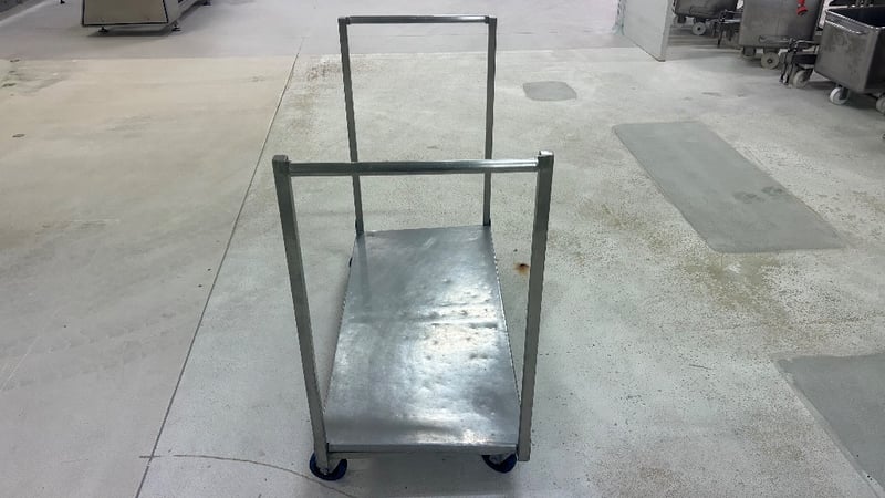 Trolley, Large Stainless Steel, Flatbed Trolley.Dimensions: H:122cm x W:150cm x D:66cm.Note: Items In Background Not Included.