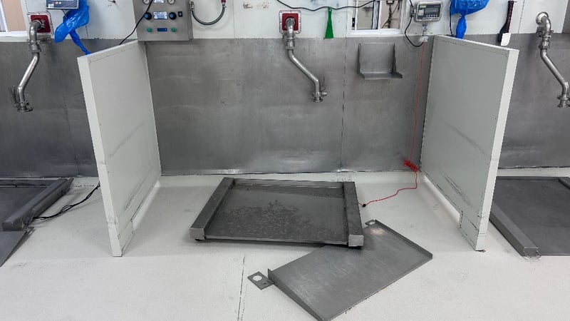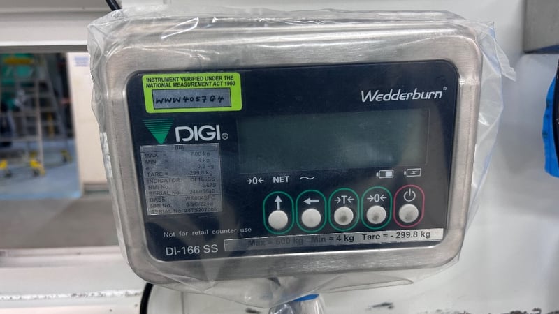 Scales, Wedderburn, Model: DI-166 SS, Industrial Scales & Display Unit.Dimensions: H:120cm x W:120cm x D:120cm.Sold As Lot.Note: Scales & Reader Only Other Items In Background Not Included.