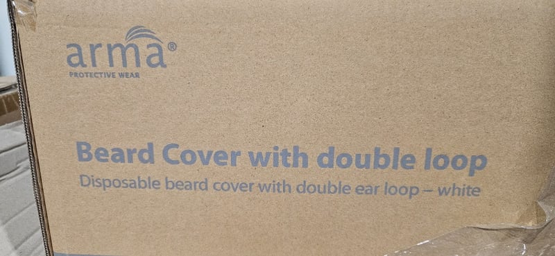Beard Covers, Pallet of Arma Protectice Wear Beard Covers. Approx 39,000 Pieces in total.