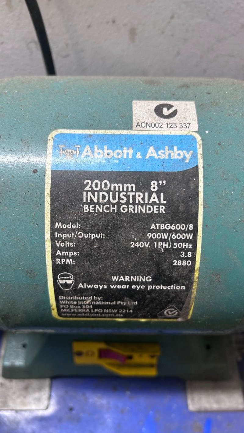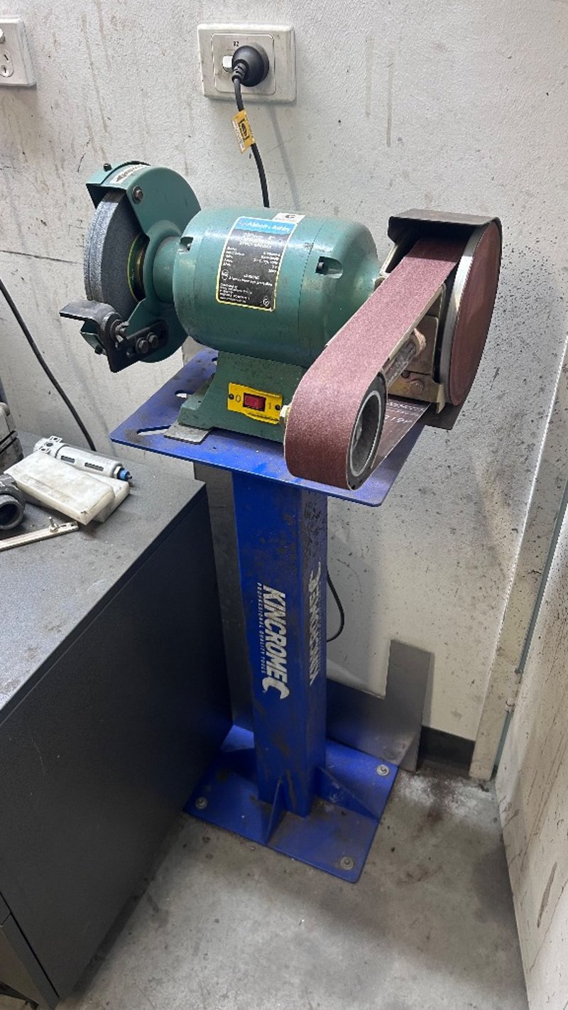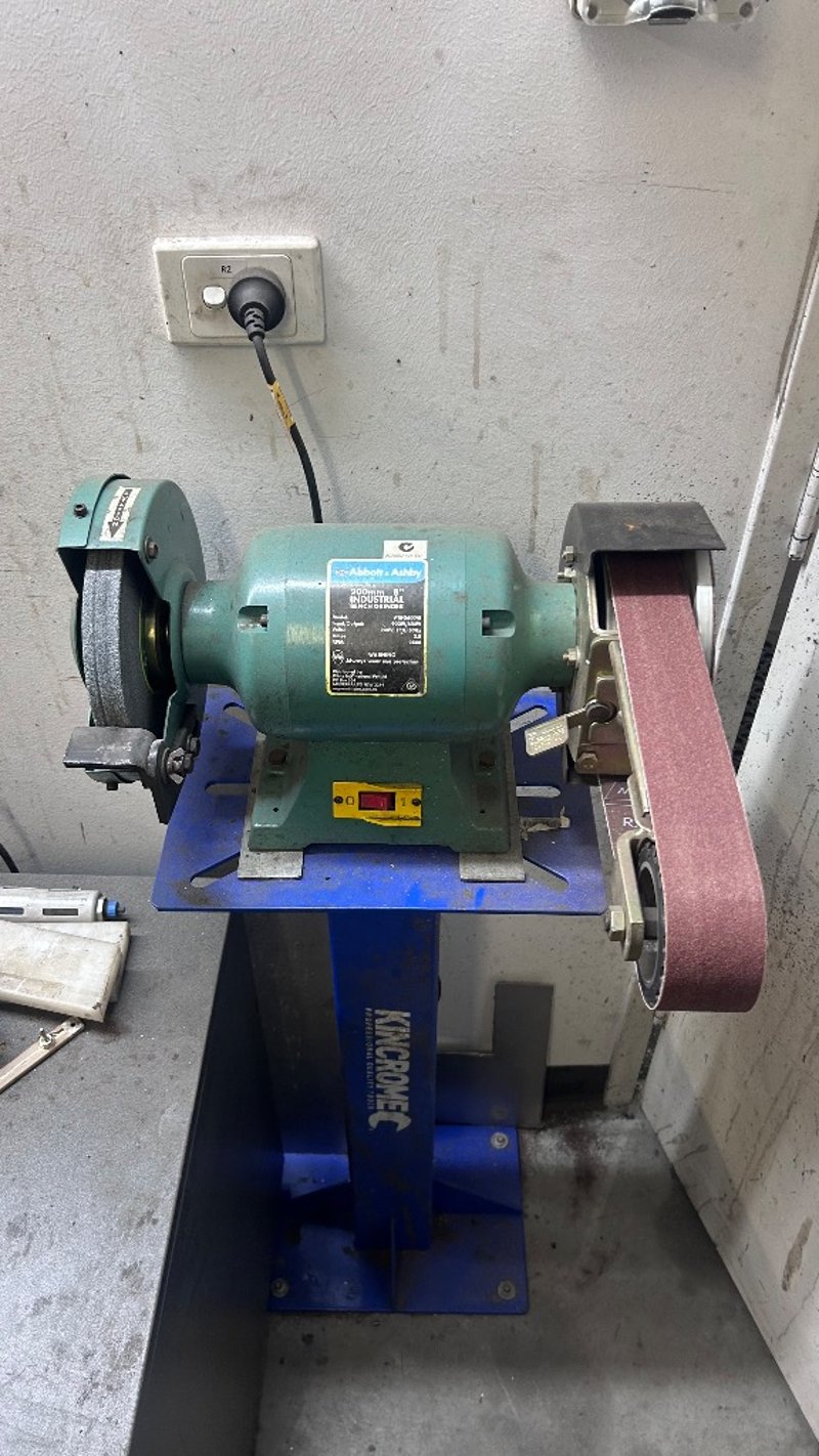 Sander, Abbot&Ashbey, Model: ATBG600/8, Standing Belt Sander.Dimensions: H:115cm x W:45cm x D:40cm.Note: Items In Background Not Included/Will Need To Be Unbolted From Floor.
