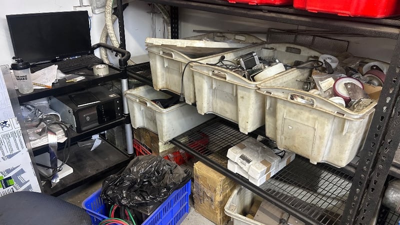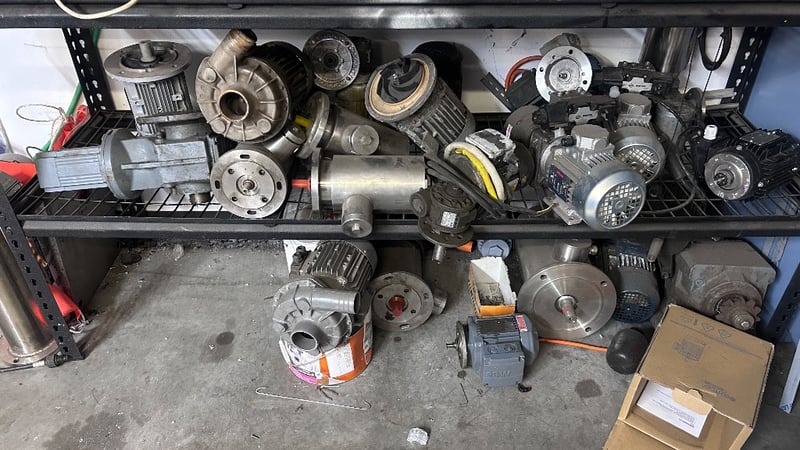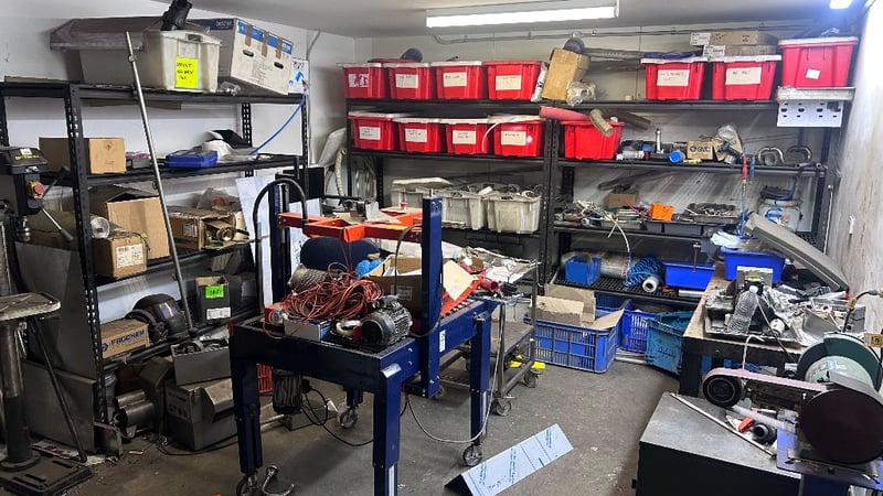 Spare Parts, Contents Of Room Including Shelving, Cabinets, Work Benches Various Spare Parts, Power Tools, Pump Units, Hand Tools & Much More.Note: Entire Contents Of Room Excluding Drill Press & Belt Sander, Any Documents Are To Be Left On Site.