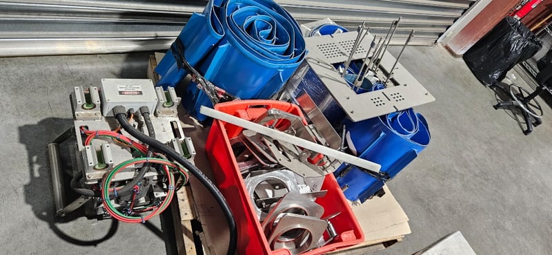 Parts, Pallet of Machinery Parts, including Conveyor Belts, Stainless Steel parts and moreSold as lot