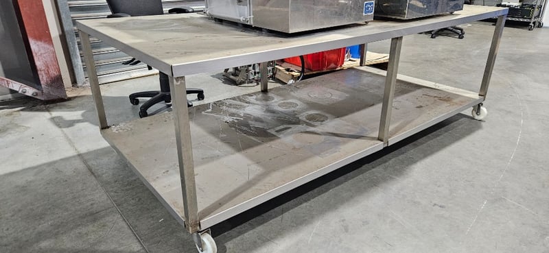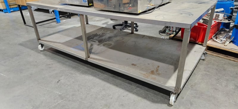 Table, Stainless Steel Table on Wheels, W 233cm D 112cm H 77cm