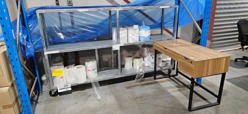 Equipment, Assorted Items Including Galvanised Shelving ( W230cm D 50cm H 138cm) and Desk (W 110cm D 55cm H 76cm)Sold as lot