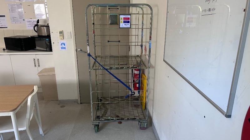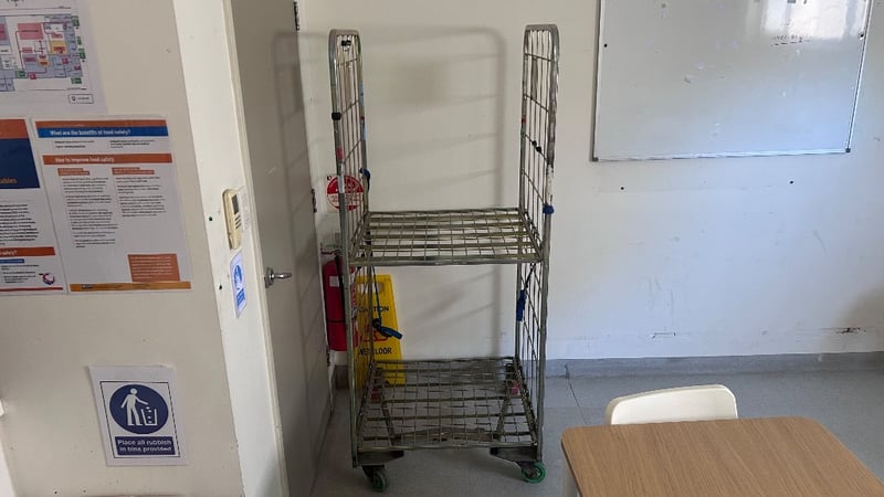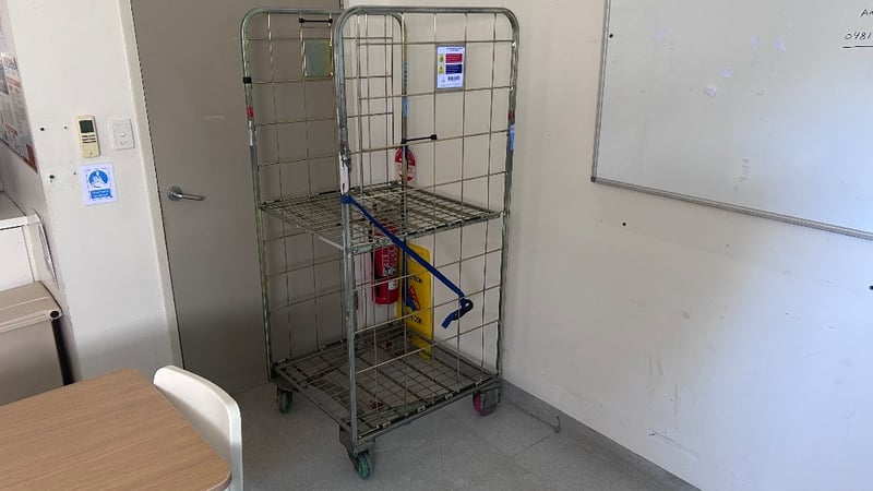 Trolley, 2 Tier Storage Trolley, On Wheels.Dimensions: H:175cm x W:75cm x D:60cm.Note: Items In Background Not Included.