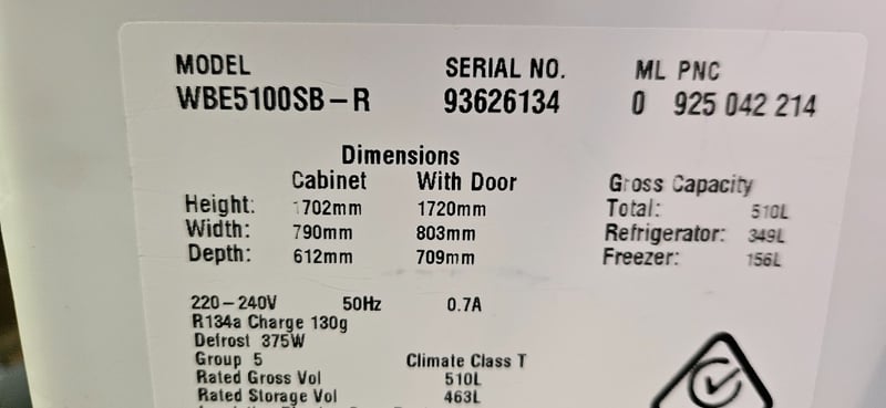 Fridge Freezer, Westinghouse Stainless Steel Fridge freezer, Model: WBE5100SB-R