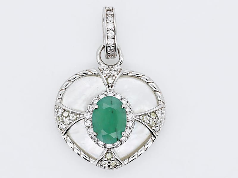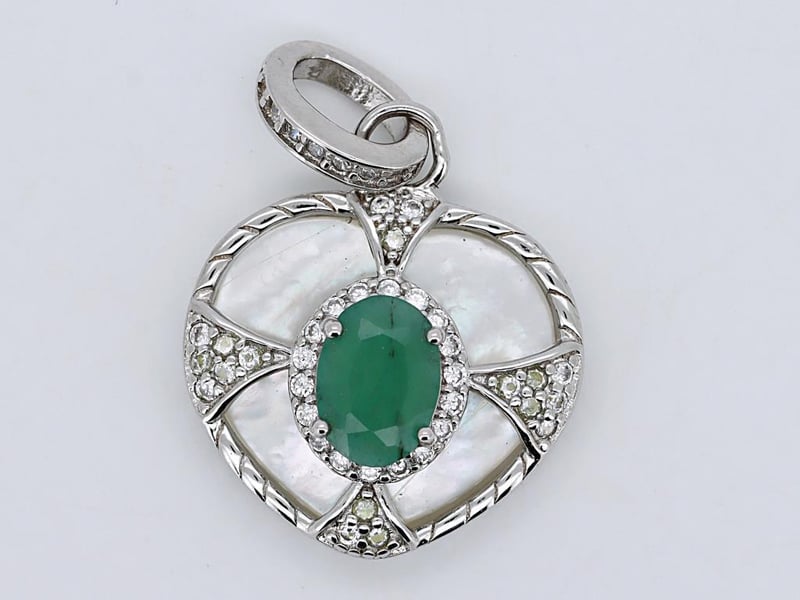 NATURAL ZAMBIAN EMERALD & MOTHER OF PEARL PENDANT ON 925 SILVER - WITH DIGITAL CERTIFICATE ONLY