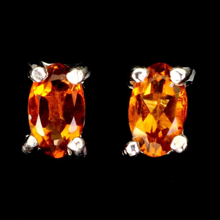 Natural Citrine Stud Earrings. Made In Solid Sterling Silver And Plated In14K White Gold. Features Natural Oval Facet Golden Citrine. Earrings Measure 5X3Mm