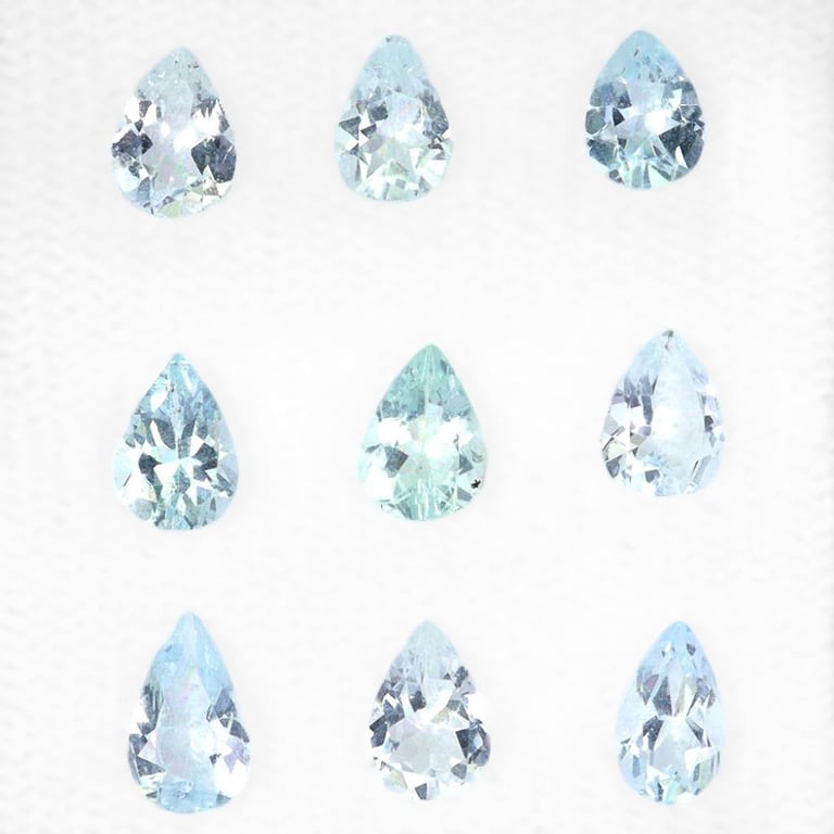 NATURAL 4.01CT PEAR FACET BLUE AQUAMARINE LOT 9 PIECES Natural 4.01Ct Pear Facet Blue Aquamarine Lot 9 Pieces Size 6.0 X 4.5 X 2.5 Mm. 7.5 X 4.5 X 2.5 Mm.Note: Image Forms Part Of Description Condition: Good - Refer Images 0488301+10