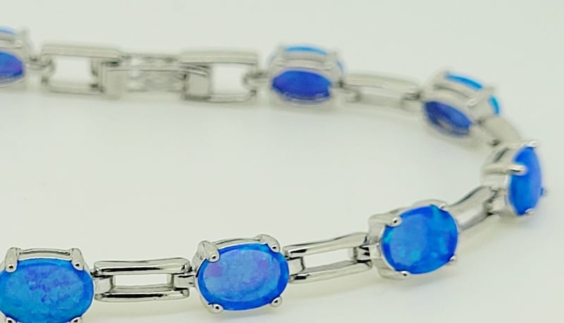 STERLING SILVER CREATED OPAL BRACELETTotal Item Weight: 8.60gLength: 20.00cmMarkings: 925Condition: Good - Refer To Images488252+9