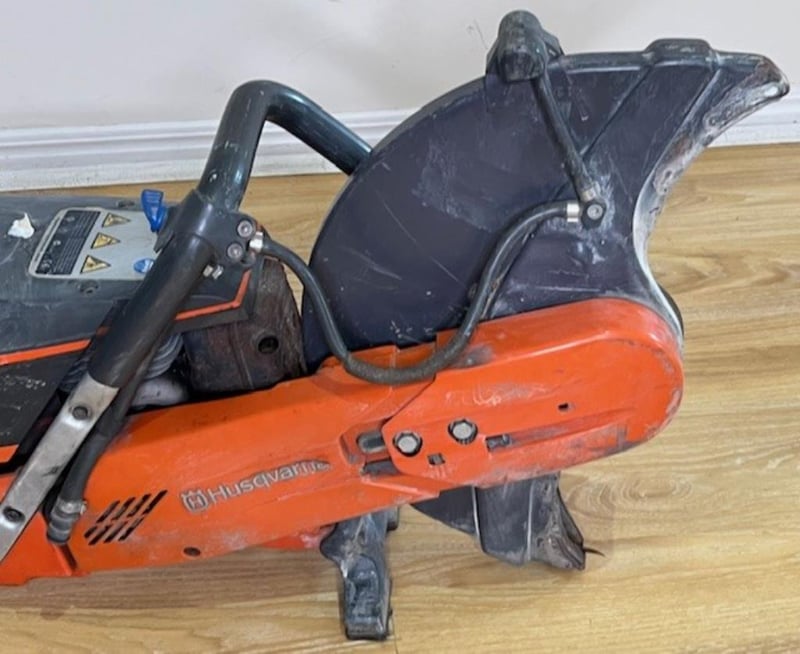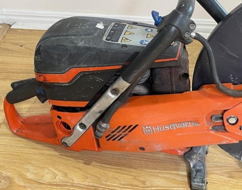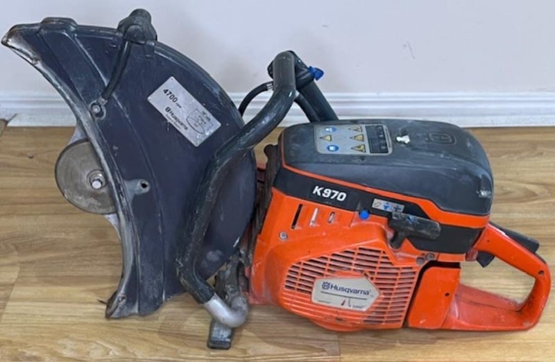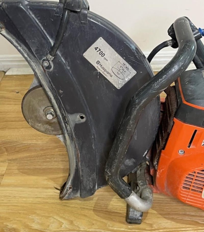 Demolition saw. 1 x Husqvarna K970. Condition: Not working, for parts or repair, has compression, missing blade.