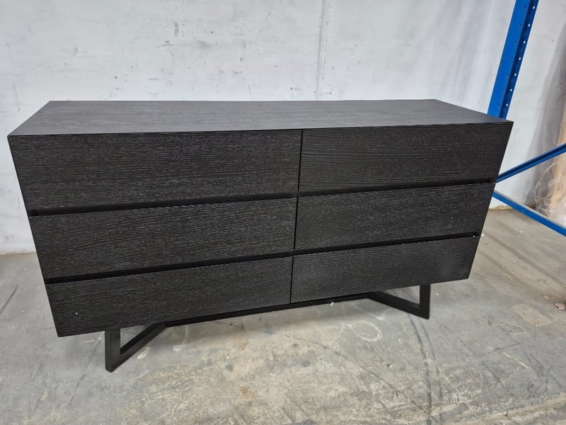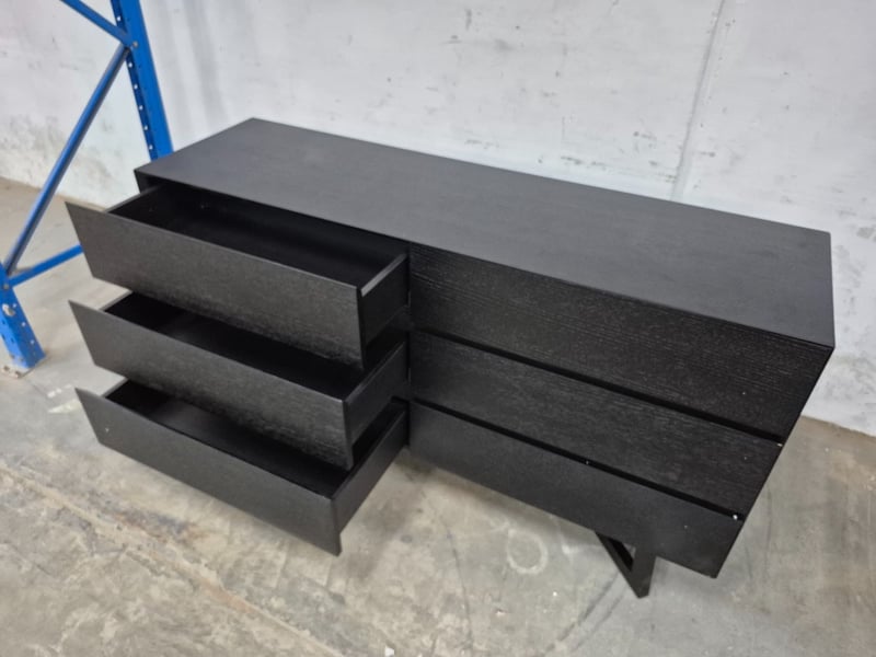 6 Drawer Cabinet, Timber, Black.Approx DimensionsH84 x W150 x D44
