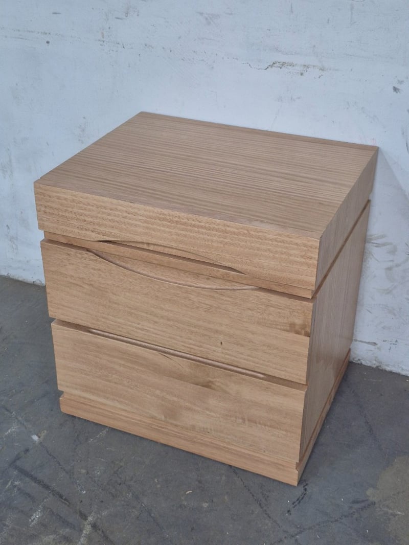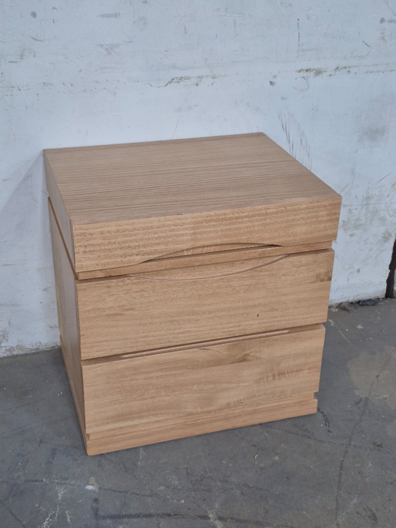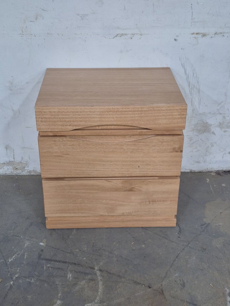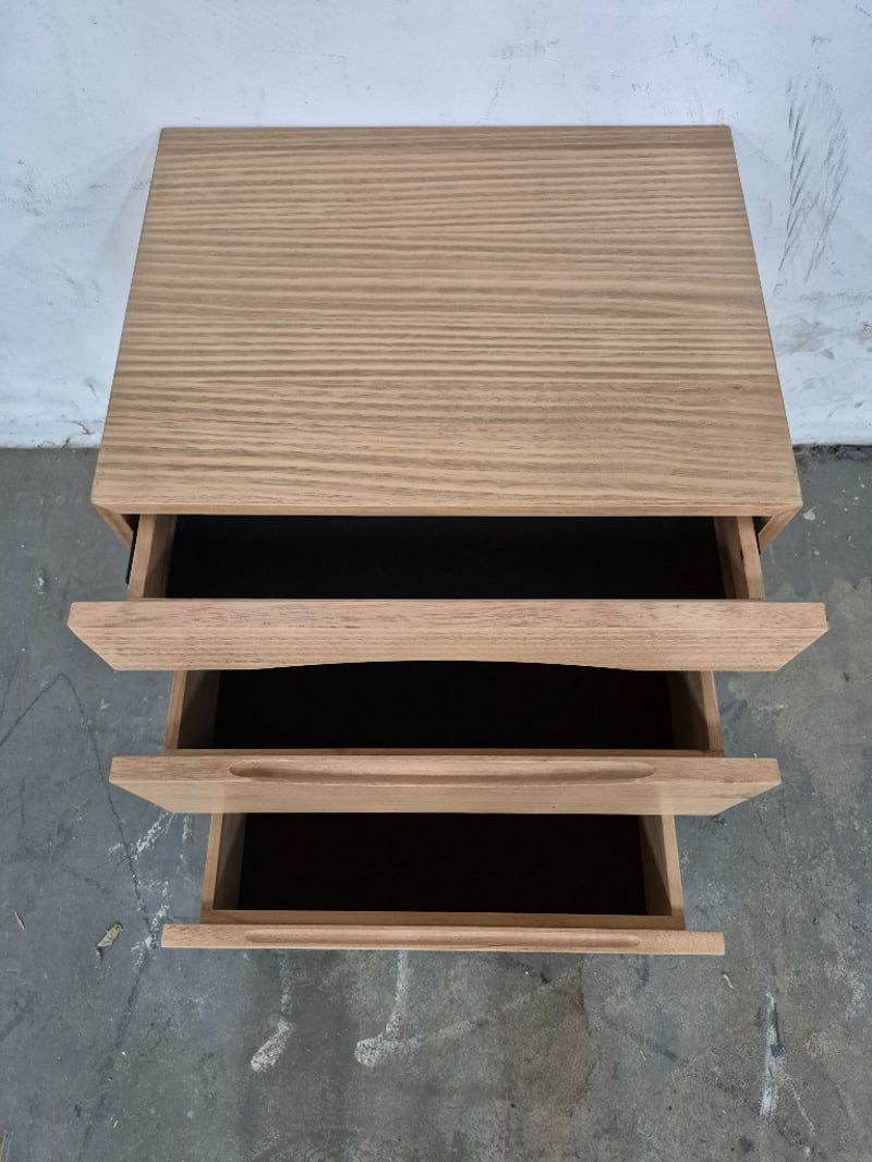 Bedside Table, Triple Drawer System, Timber, Natural Look.Note: no legs suppliedApprox DimensionsH56 x W55 x D55