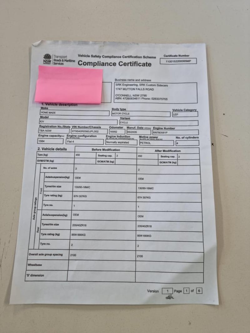 2005 HMADE ICV Trike Black Year: 2005Make: HMADEModel: ICVBody: TrikeDrive Type: Manual Odometer: 14928Engine: 1600cc Transmission: Manual 4 SpeedColour: BlackSeats: 2Description/extras: Full NSW Compliance Certificate & NSW Rego.- Worked 1600CC , 4 Speed Manual.VIN: 6T9540R056OJPL002ENG No: AN780581PKey #MMR14#MMR