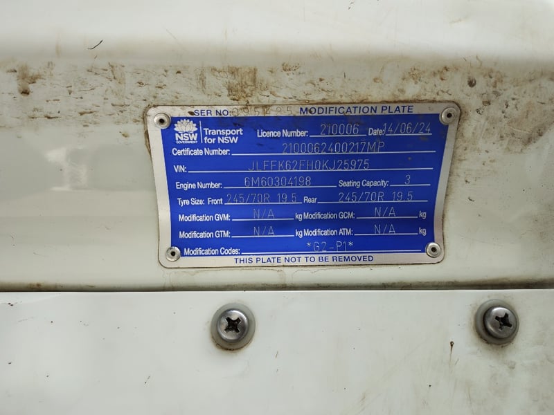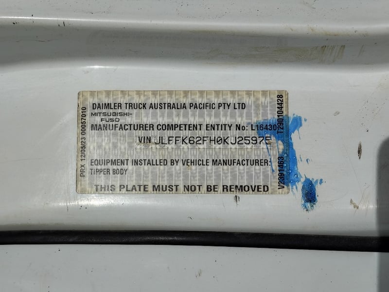 2024 Mitsubishi Fuso 1124 Fighter Tipper Truck Year: 2024 Make: Mitsubishi Model: Fuso Series: 1142 Body: Tipper Truck Transmission: 6 Speed Manual Odometer: 43,286 km Seat: 3 Description: CV Radio, Air-conditioning, Reverse Camera, Owner manual. Modification Codes: G2-P1, Kyukuto Kaihatsu Tipper Body Model DD04-35 VIN: JLFFK62FH0KJ25975 ENGINE: 6M60304198 GVM: 20,000 Kilograms Location: Mornington, VIC Contact: Gage Mackay - 0458 732 549 or [email protected] Inspections: Monday the 27th of October 9am - 3pm Address: 14 Carbine Way, Mornington