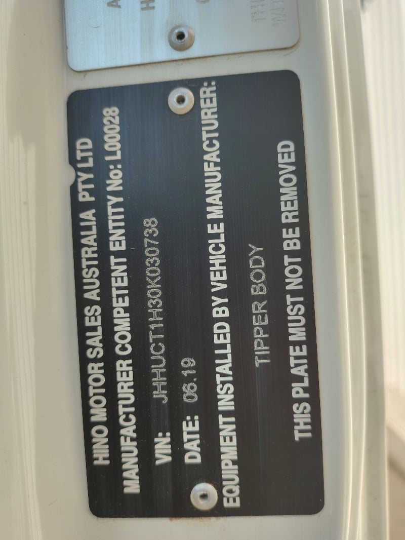 2019 Hino 300 Tipper Truck Year: 2019 Make: Hino Model: 300 Body: Tipper Truck Odometer Indicated: 111,102kms Engine:N04C UT Diesel Transmission: Manual 6 Speed VIN: JHHUCT1H30K030738 Engine Number: N04CUT25595 (As Per PPSR) Colour: White Seats: 2 Description/Extras: Walkie Talkie, Aircon, Bluetooth, toolboxes GVM: 6,500 kg GCM: 10,000 kg Location: Mornington, VIC Contact: Gage Mackay - 0458 732 549 or [email protected] Inspections: Monday the 27th of October 9am - 3pm Address: 14 Carbine Way, Mornington