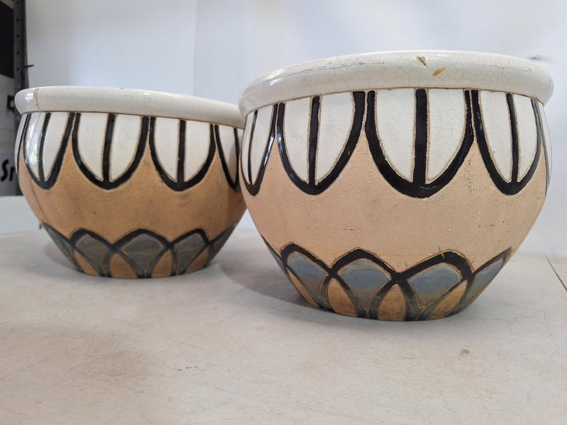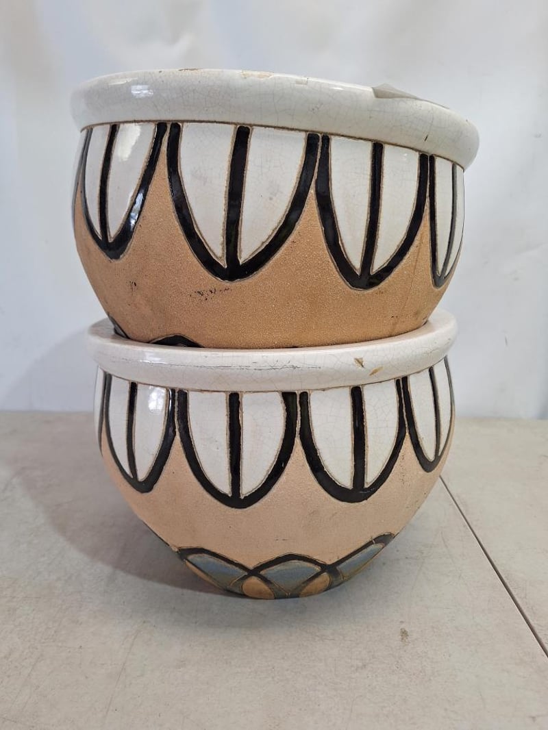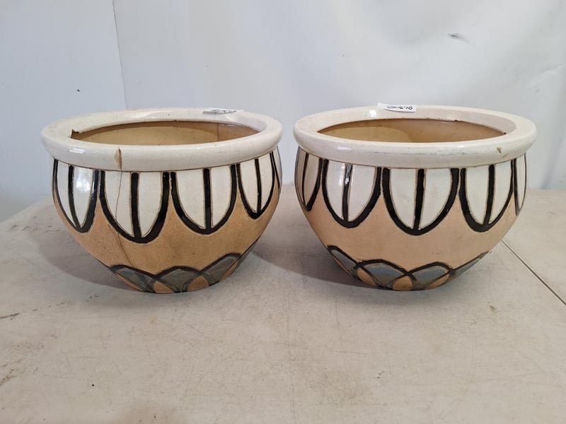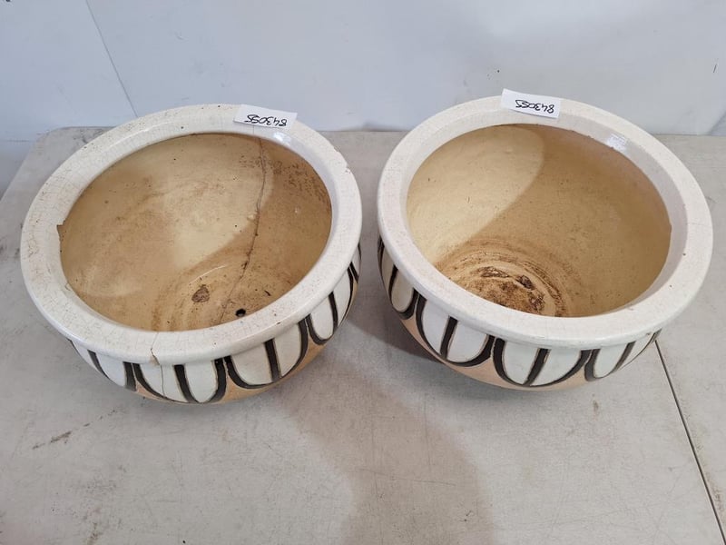 X2 Planter Pots, Ceramic Style, Multi-Coloured Finish Dimensions H:22cm W:33cm D:33cm SOLD AS LOT