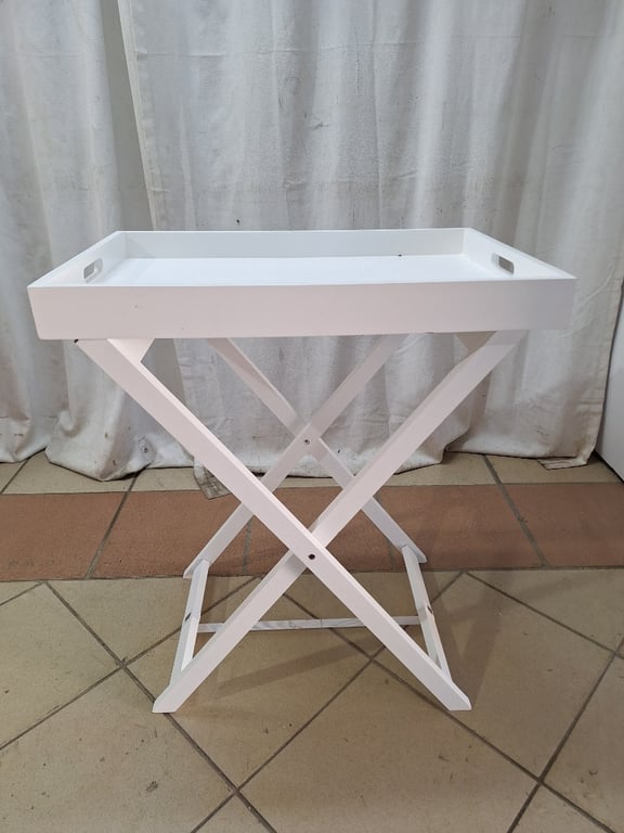 Tray Table With An X-shaped Folding Base, Timber Style, White Finish