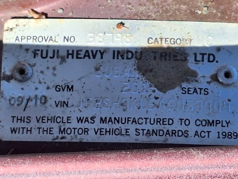 2010 Subaru Forrester Year: 2010Make: Subaru Model: Forrester Body: WagonVIN: JF2SH9KL5AG053909Engine: 4-Cylinder Engine No: E257783Transmission: Automatic Colour: MaroonDescription: Front Window Cracked, General Wear And Tear EvidentAll vehicles in this sale are sold with no keys (unless stated otherwise), as is, where is, with no warranty. Any contents as shown in photos may remain with the asset. No mechanical checks or assumptions have been made, therefore we recommend careful consideration prior to bidding.Online Viewing Only, PAYMENT IS DUE 24 HOURS AFTER THE AUCTION CLOSESCollections to occur over 3 days on Wed 5th to Fri 7th of November between 7am to 3.30pm.This Vehicle is unwarrantedPotential of unknown dangerous items (e.g., broken glass, syringes, etc).Persons who enter the vehicle do so at their own risk due to potential presence of unknown items.For all Enquiries, Please Contact Jamie directly on 0486 045 295 or alternatively [email protected]