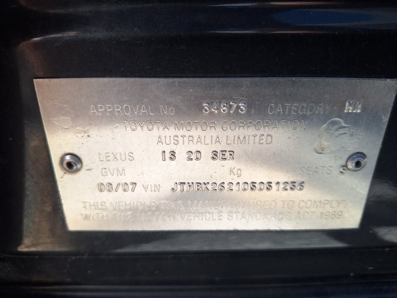 2007 Lexus IS250Year: 2007Make: LexusModel: IS250Body: SedanVIN: JTHBK262105051256Engine: V6Engine No: 4GR0379490Transmission:Automatic Colour: GreyDescription: Air-Conditioning, Power Windows, Sunroof Head Unit Display, Power Mirrors, Mag Wheels, General Wear And Tear EvidentAll vehicles in this sale are sold with no keys (unless stated otherwise), as is, where is, with no warranty. Any contents as shown in photos may remain with the asset. No mechanical checks or assumptions have been made, therefore we recommend careful consideration prior to bidding.Online Viewing Only, PAYMENT IS DUE 24 HOURS AFTER THE AUCTION CLOSESCollections to occur over 3 days on Wed 5th to Fri 7th of November between 7am to 3.30pm.This Vehicle is unwarrantedPotential of unknown dangerous items (e.g., broken glass, syringes, etc).Persons who enter the vehicle do so at their own risk due to potential presence of unknown items.For all Enquiries, Please Contact Jamie directly on 0486 045 295 or alternatively [email protected]