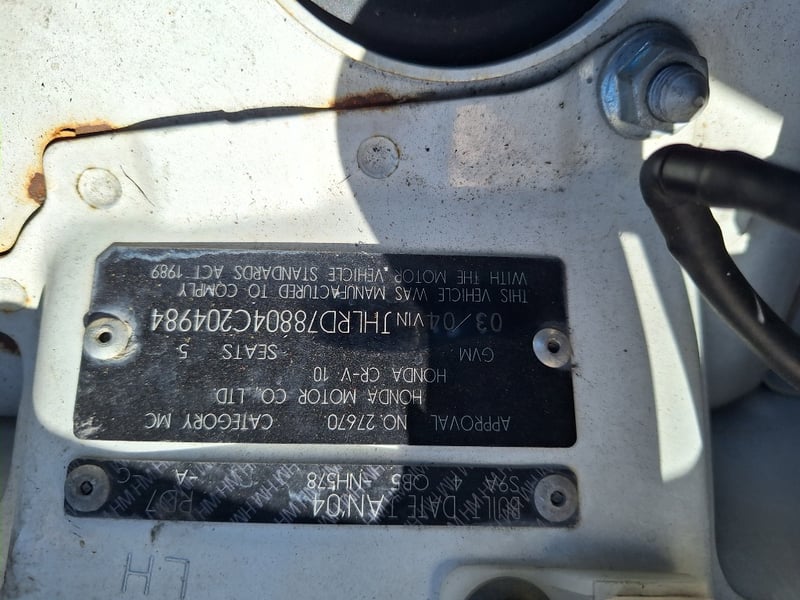 2004 Honda CRVYear: 2004 Make: Honda Model: CRVBody: Wagon VIN: JHLRD78804C204984Engine: 4-Cylinder Engine No: K24A13403942Transmission: Automatic Colour: White Description: General Wear And TearAll vehicles in this sale are sold with no keys (unless stated otherwise), as is, where is, with no warranty. Any contents as shown in photos may remain with the asset. No mechanical checks or assumptions have been made, therefore we recommend careful consideration prior to bidding.Online Viewing Only, PAYMENT IS DUE 24 HOURS AFTER THE AUCTION CLOSESCollections to occur over 3 days on Wed 5th to Fri 7th of November between 7am to 3.30pm.This Vehicle is unwarrantedPotential of unknown dangerous items (e.g., broken glass, syringes, etc).Persons who enter the vehicle do so at their own risk due to potential presence of unknown items.For all Enquiries, Please Contact Jamie directly on 0486 045 295 or alternatively [email protected]