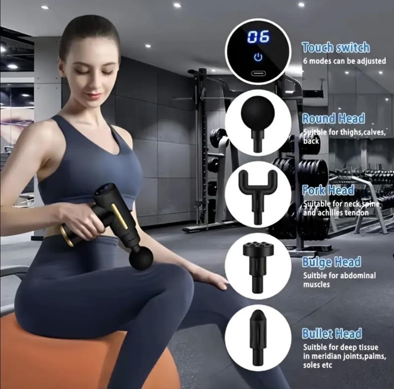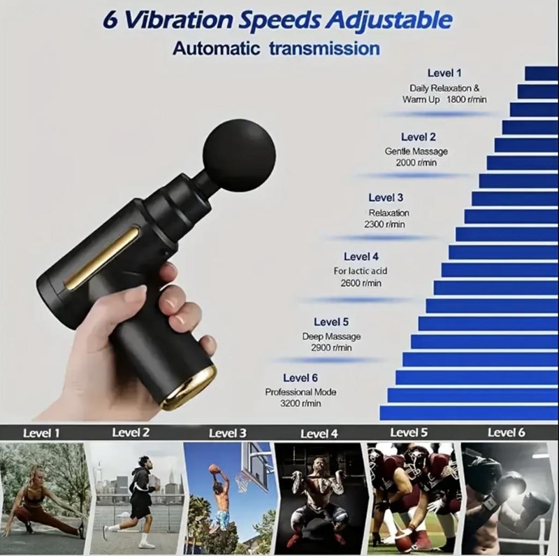 USB Rechargeable Massage Gun with LCD Display, 6-Speed Adjustable Deep Tissue Muscle Relaxation, Full Body Coverage, Sleek Black Design