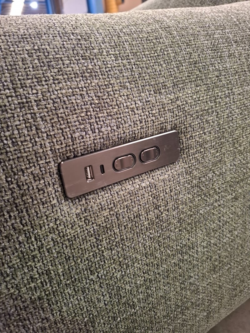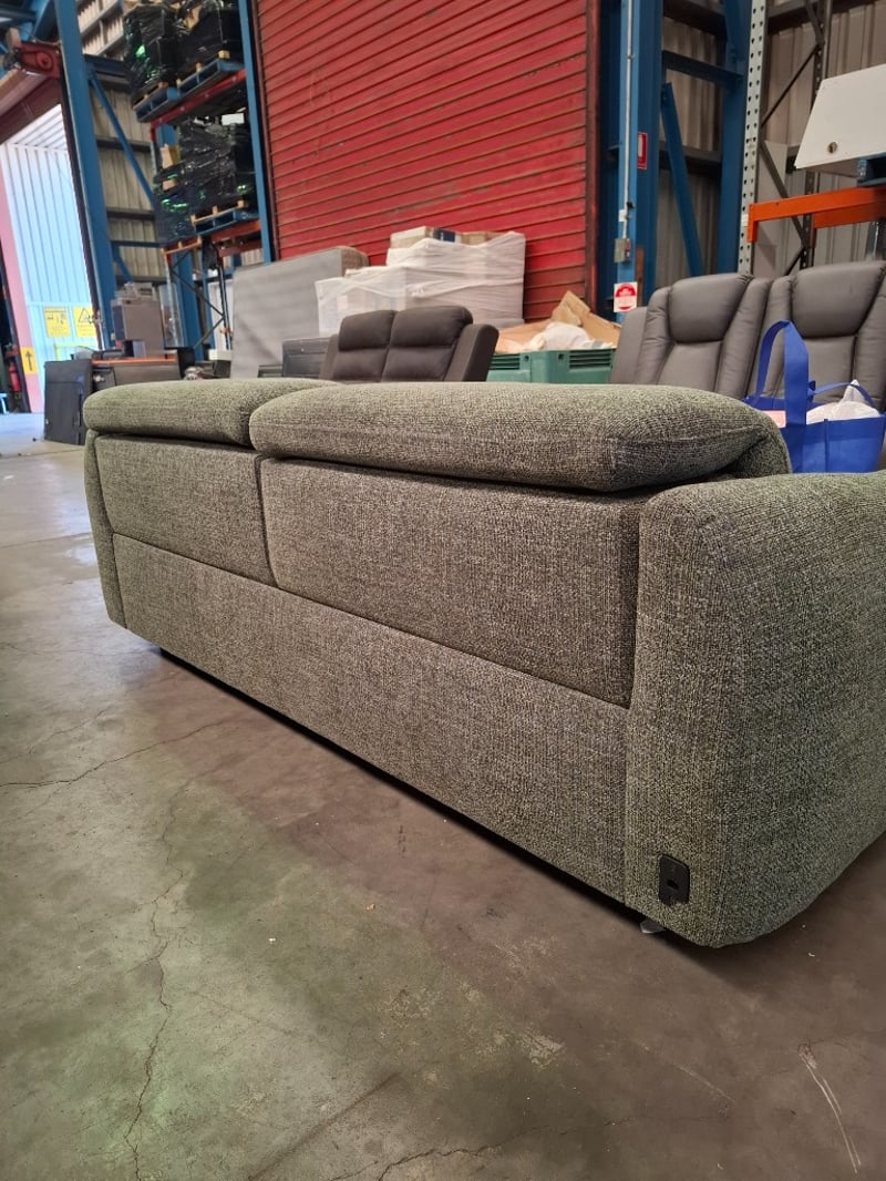 2 Seater Electric Recliner, Fabric Upholstery, Colour: Moss, Push Button Controls, Dimensions Approx: 200cm(W) x 105cm(D) x 75cm(H) NOTE: GENERAL WEAR