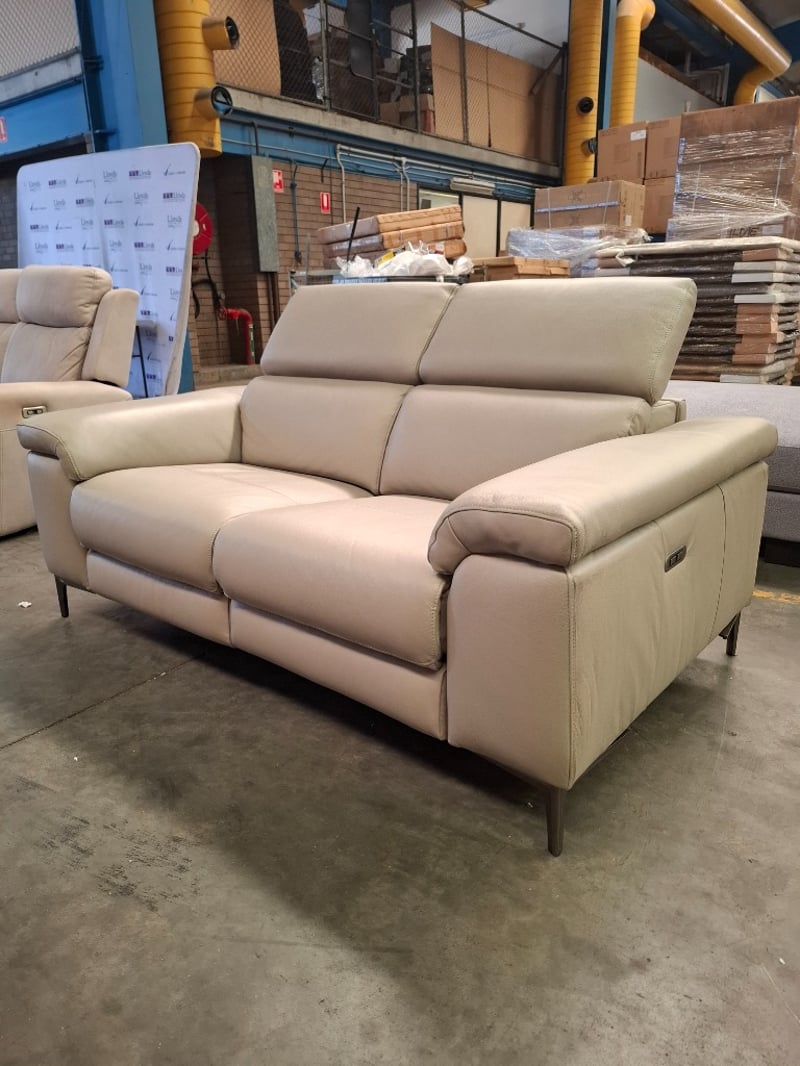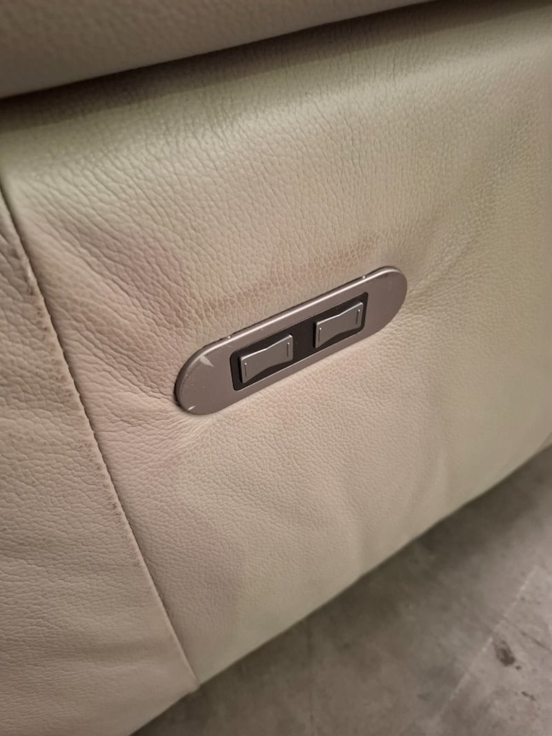 2 Seater Electric Recliner, Leather Upholstery, Colour: Bage, Push Button Controls, Dimensions Approx: 170cm(W) x 95cm(D) x 94cm(H) NOTE: GENERAL WEAR
