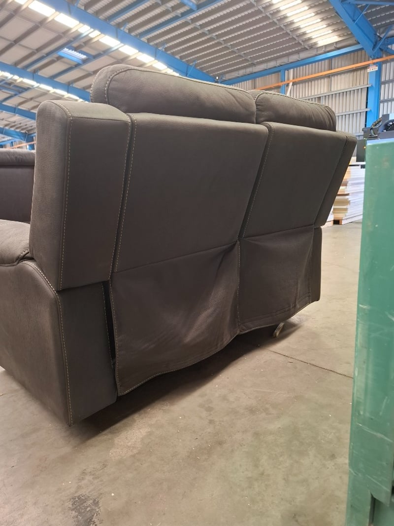 2 Seater Electric Recliner, Leather Upholstery, Colour: Charcoal, Pull handle Controls, Dimensions Approx: 150cm(W) x 85cm(D) x 105cm(H) NOTE: MAJOR