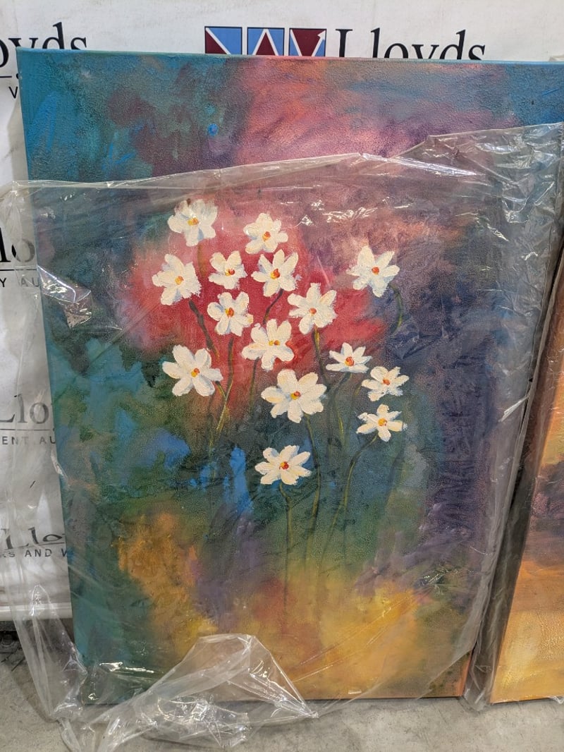 ASSORTED FLOWER PAINTINGS ON CANVASQuantity - 3Size - 60cm x 90cmSOLD AS LOT