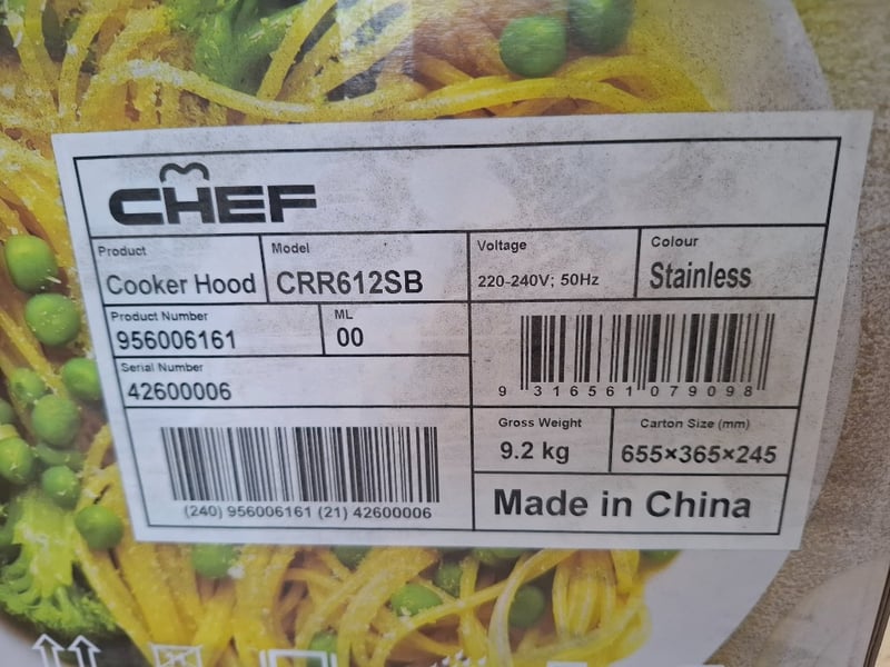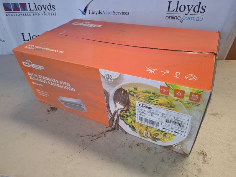 RRP $ 299, Chef 60cm Stainless Steel Slide-Out Rangehood, model CRR612SB
