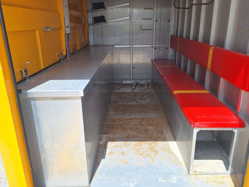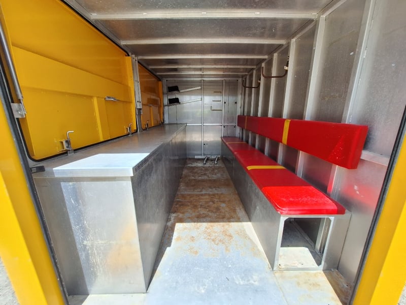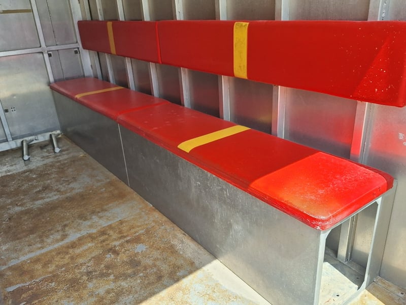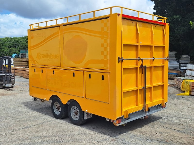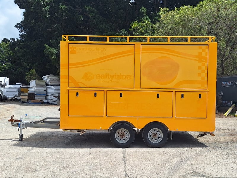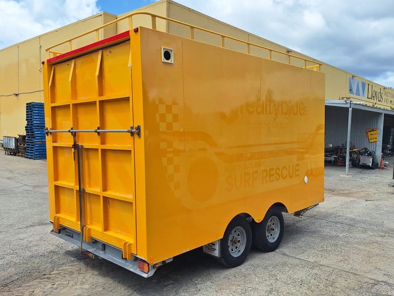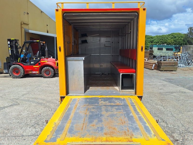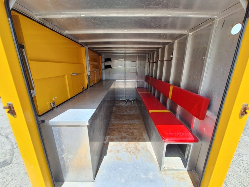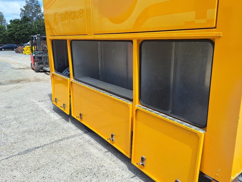 Description/Extras: Heavy Duty Draw Bar, 50mm Hitch, Chains, Jockey Wheel, Stabilisation Legs x 4, 3 x External Storage Lockers, Rear Ramp, With Bench Seating, Stainless Bench, Approximate Box Dimensions NOT Including Drawbar, 2990mm (H) x 2220mm (W) x 4000mm (L)