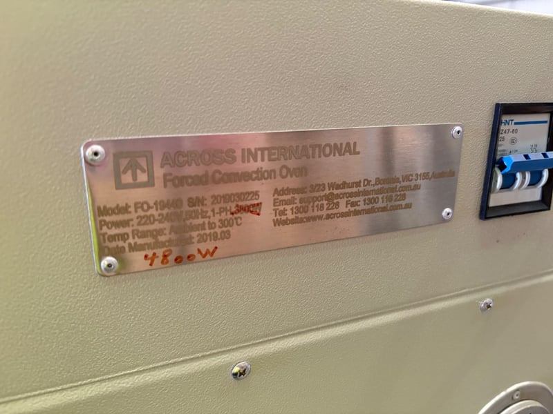 2019 Forced Convection Oven , Across International , Model FO-19440 , S#2019030225. Note Untested. Cable appears to have been cut.