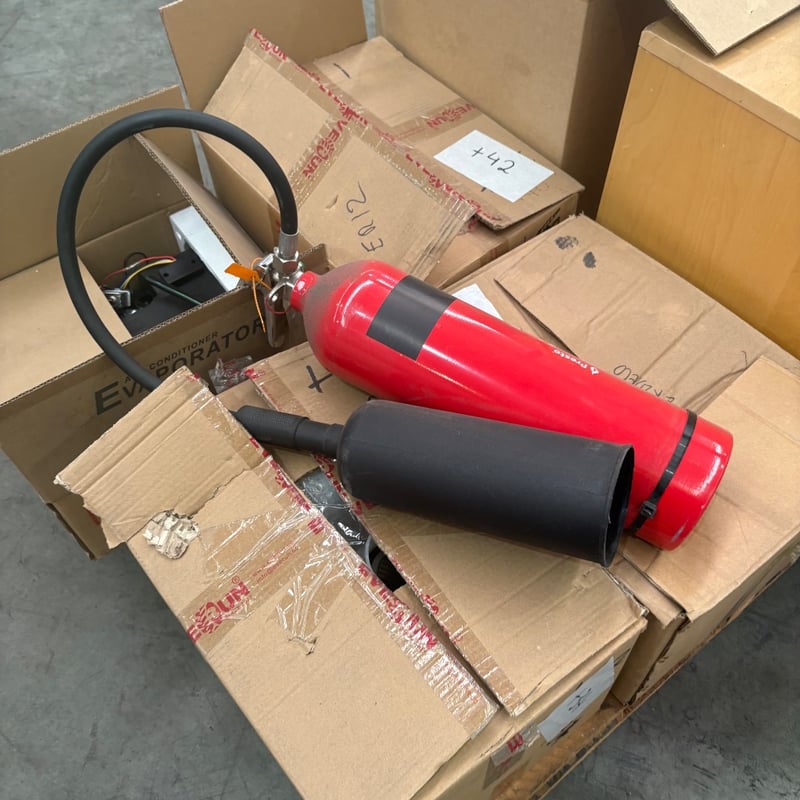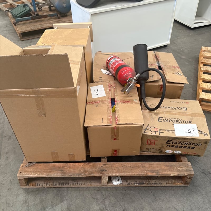 Assorted Air Filters, automotive consumables & Fire Extinguisher LotIncludes multiple boxed air filters (various sizes and styles), other consumables and one red fire extinguisher (no service tag attached).Note: Items appear new in packaging, however, all are untested. Fire extinguisher condition unverified. Sold as lot.