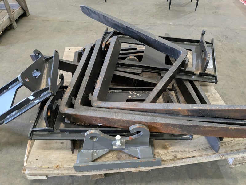 Pallet Forks, Manual Adjustment, Qty: 4 Backboards + 8 TinesApproximate Dimensions: 900mm(W) x 910mm(D) x 550mm(H)Sold as Lot