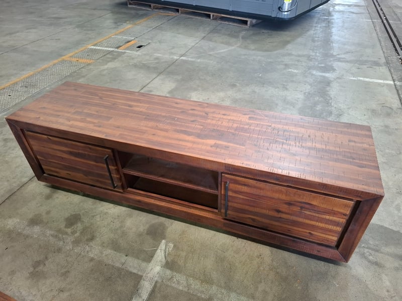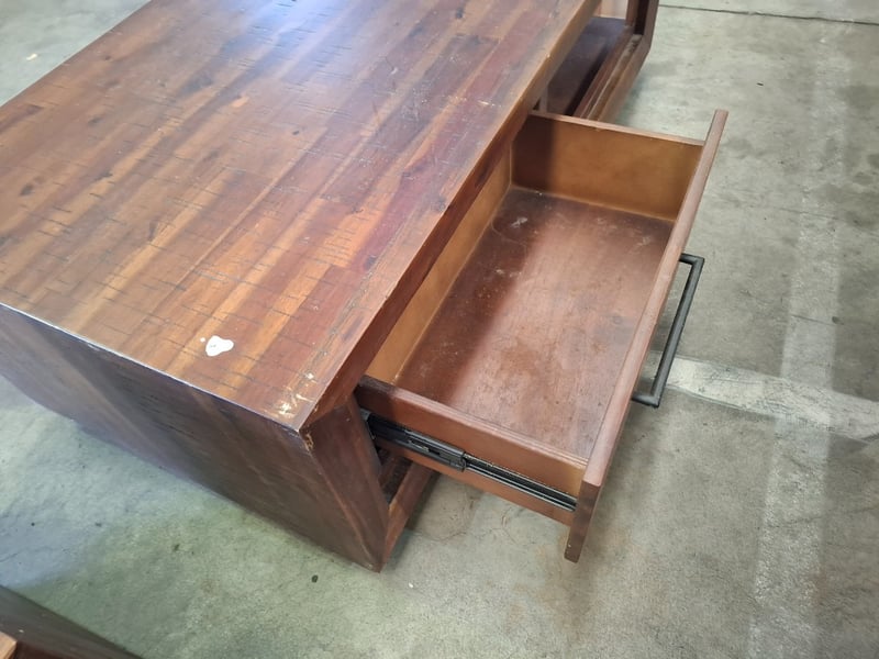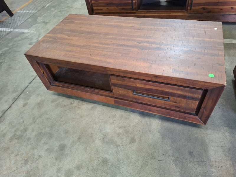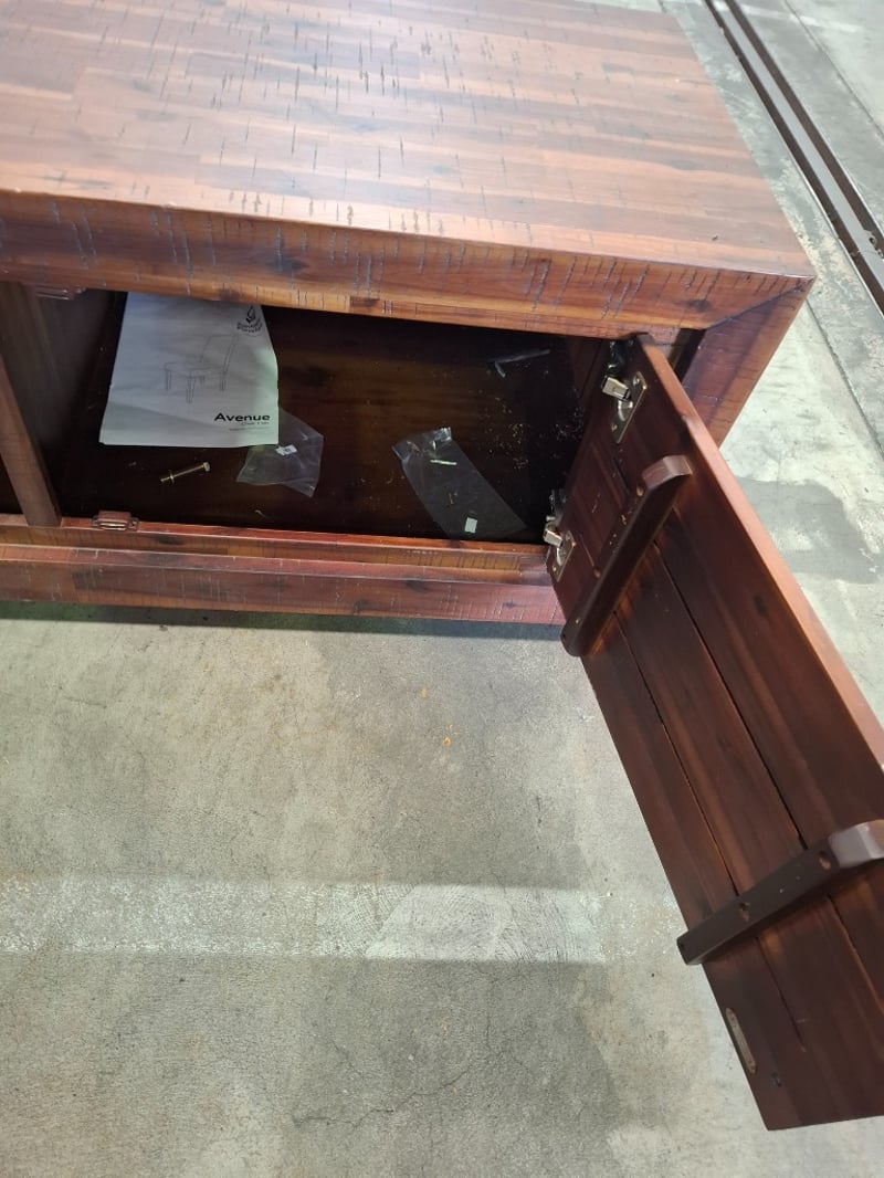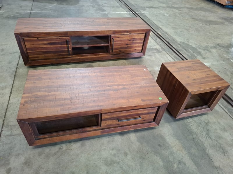 Living room furniture set, includes 1 x light timber oak finished TV unit 2 doors and shelf 180 cm x 48 cm x 51 cm , coffee table 2 drawers 120 cm x 60 cm x 41cm, side table 50 cm x 50 cm x 45 cm