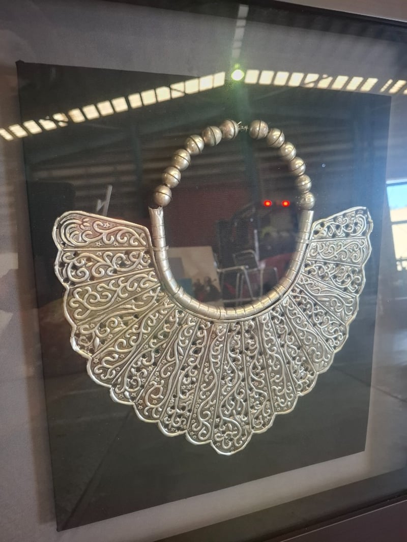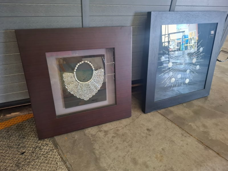 2 x Tribal art wall decorative, dark timber frame and glass , 80-90 cm x 80-90 cm