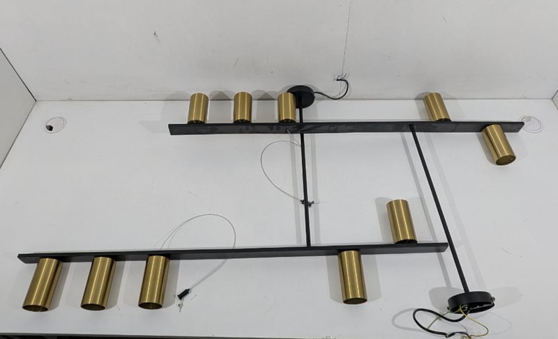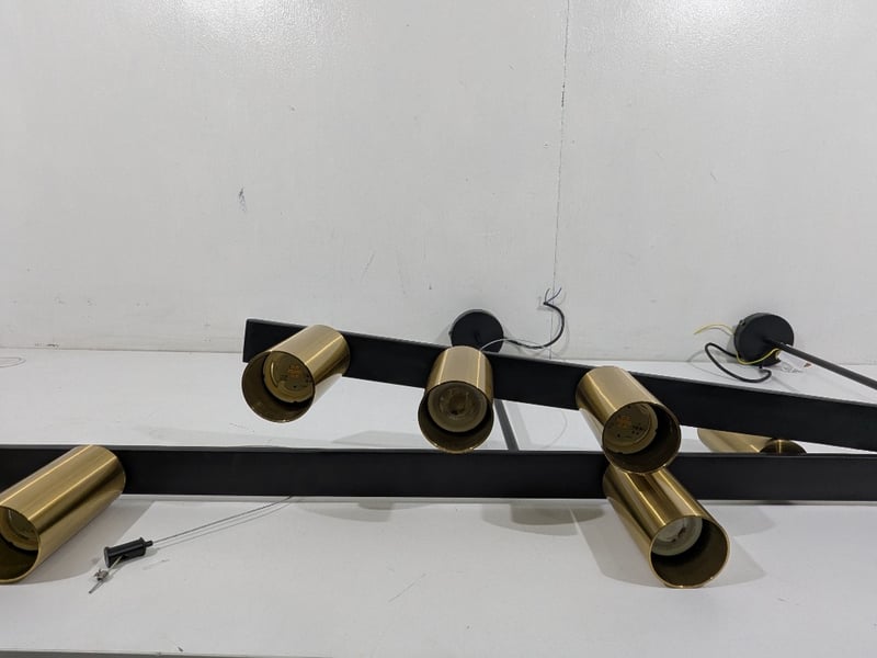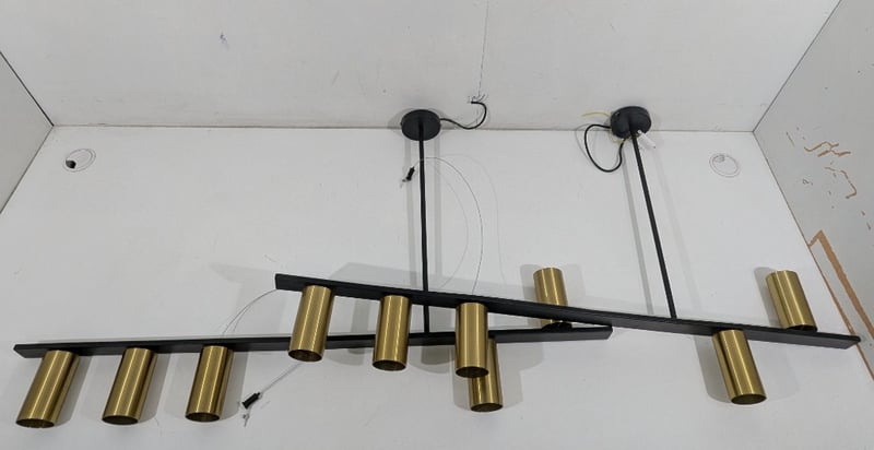 About Space, Steel Pendant Ceiling Lights, Black frame and gold cylindrical shades, Non adjustable Qty: 2Dimensions: 5x110x54cm