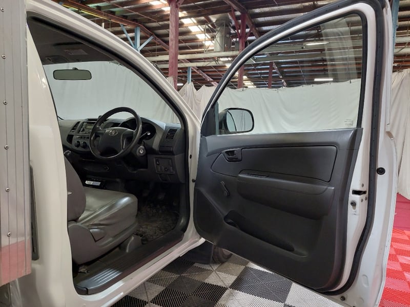 2012 Toyota Hilux TGN16R Workmate Year: 2012 Make: Toyota Model: Hilux Series: TGN16R Badge: Workmate Body: Single Cab Chassis Drive Type: Rear wheel drive Odometer: Indicating 520,760 Kilometres Engine: 2.7 I4 Petrol Transmission: 5-Speed Manual Colour: White Seats: 3 Description/extras: Air Conditioning, SRS, Leather interior, Alloy wheels, Central locking, CD player. 1x key Has books. Vendor advises that it is refrigerated. Price Guide - $6,100 - $8,250 (Based on Unmodified Vehicle) VIN: MR0CX12G600082133 ENG No: 2TR7256722 (as per PPSR) #PCV #ONETOTEN (Key #26A Marple) Lloyd's stock #1013125+1