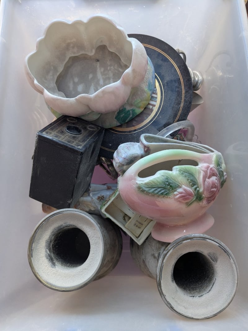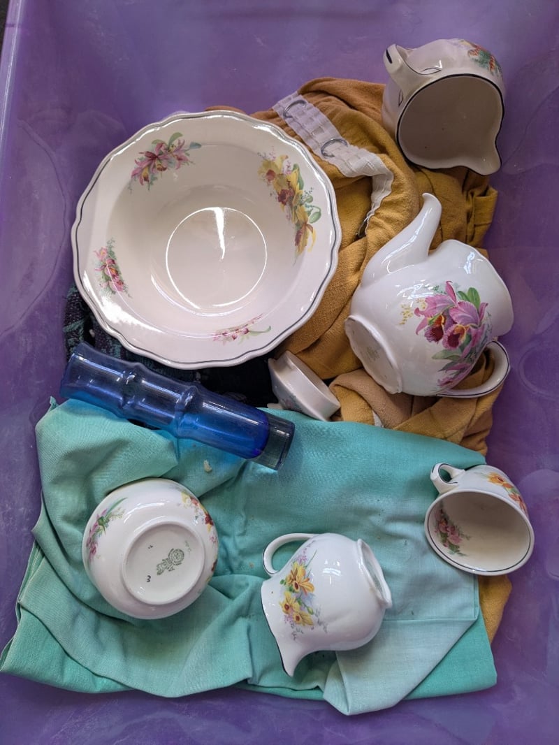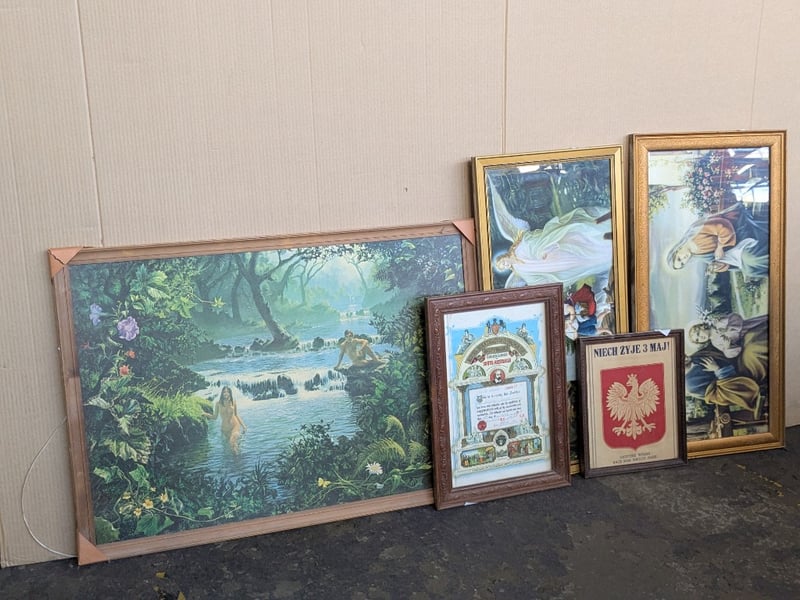 Homewares, including Royal Doulton china, 5 x framed prints vases, glassware and more