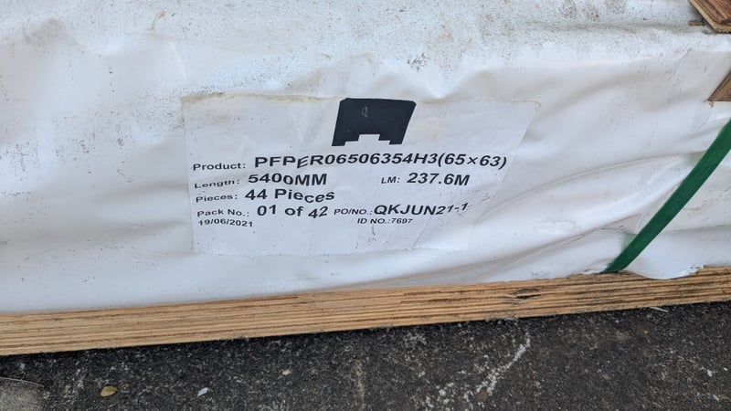 Rebated Bread Loaf Pine 44pcs Qty: 44x5.4 = 237.6LM Dimensions: 5400mm (L) x 65mm (W) x 63mm SOLD AS LOT