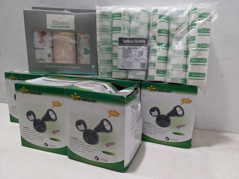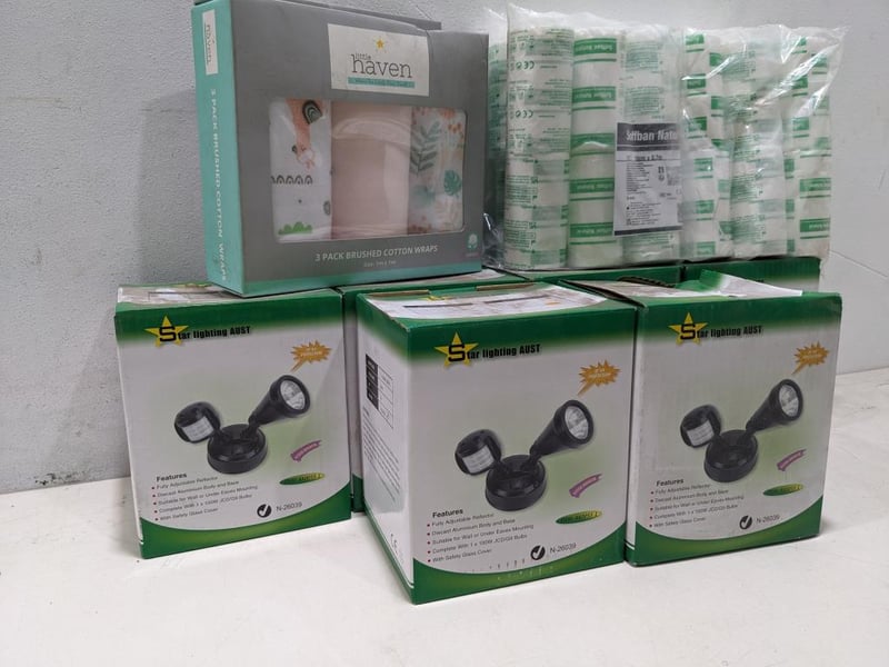 Assorted items includes, star lighting, brushed cotton wraps and more..