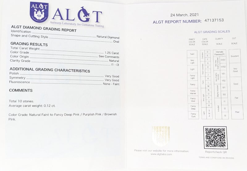 1.25TCW OVAL NATURAL DIAMONDS 10 Stones, 0.12Ct Each I3, Natural Color Accompanied By Algt No.47137153 Condition: Good - Refer To Images FC 162968+11