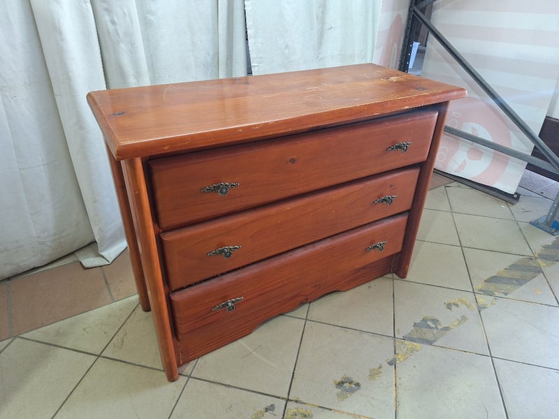 Chest of Drawers, 3 Storage Areas, Timber Style, Brown Finish