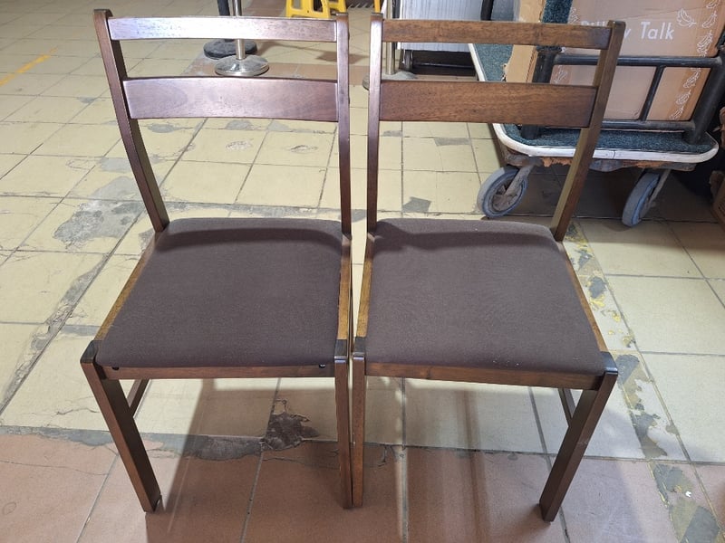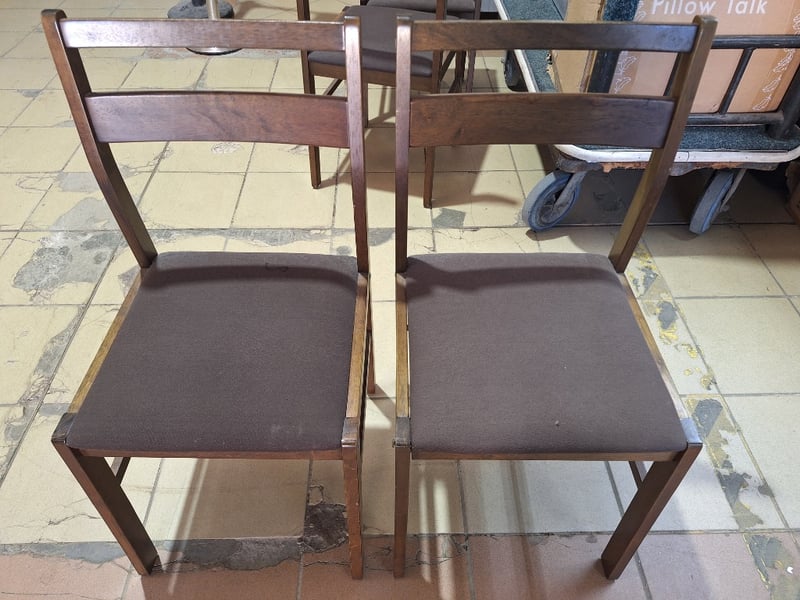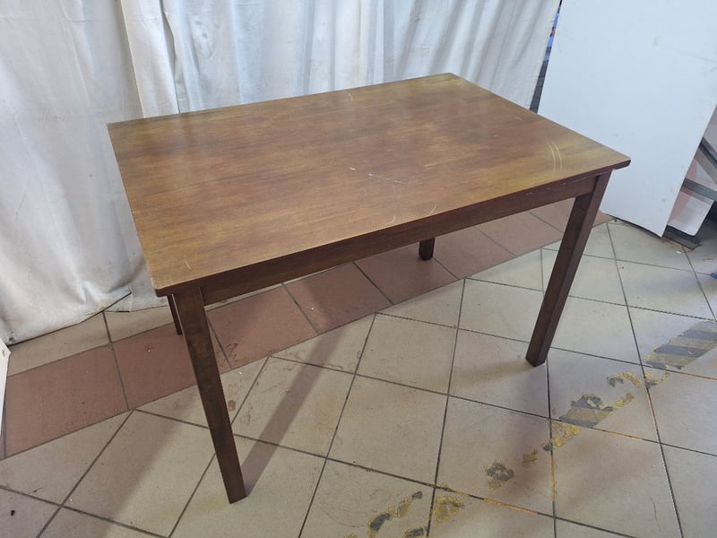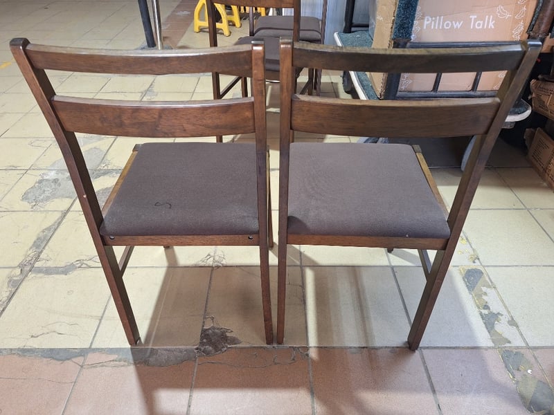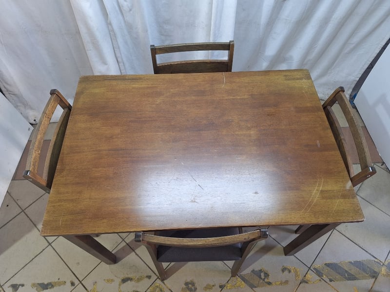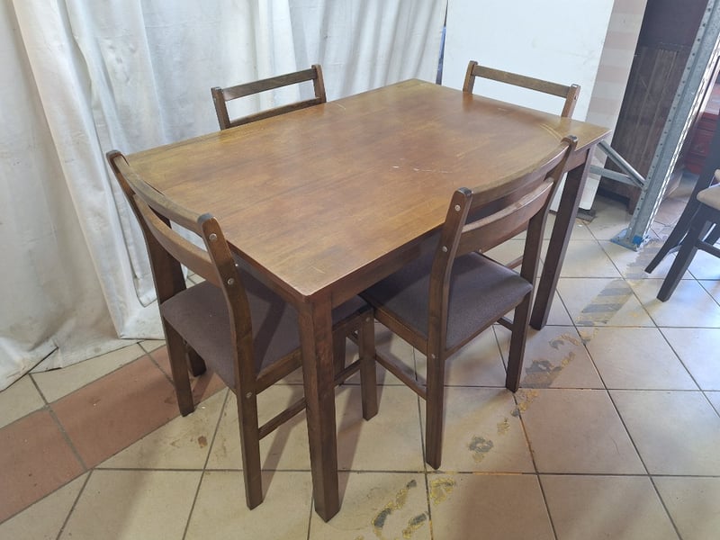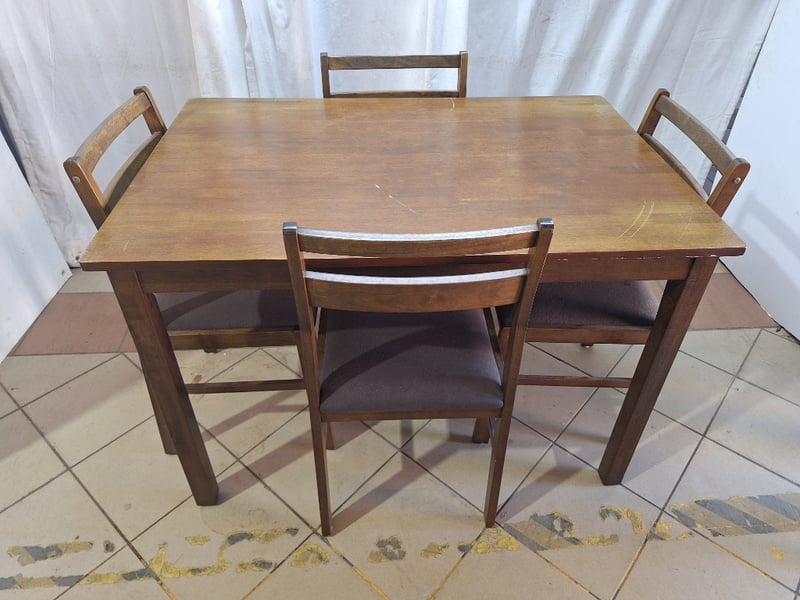 4-Seater Dining Table, Cushions On Chairs, Timber Finish, Brown Finish Dimensions Chair H:83cm W:40cm D:40cm Dimensions Table H:74cm W:110cm D:75cm SOLD AS LOT