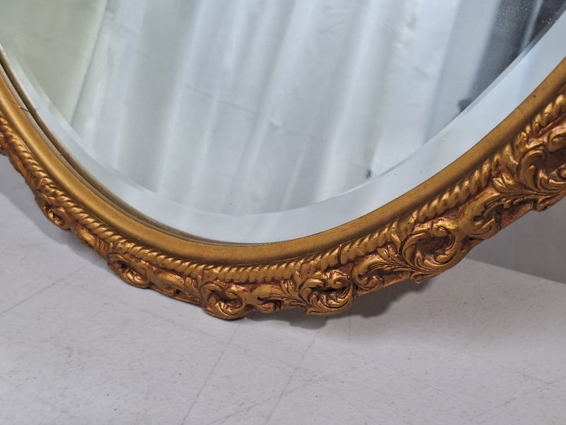 Decorative Round Wall Mirror, Metal Style, Gold FinishDimensions H:83cm W:57cm D:2cm