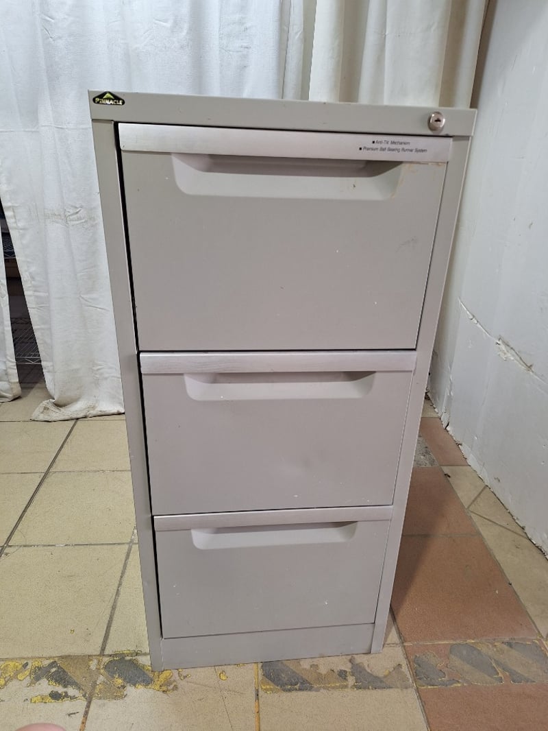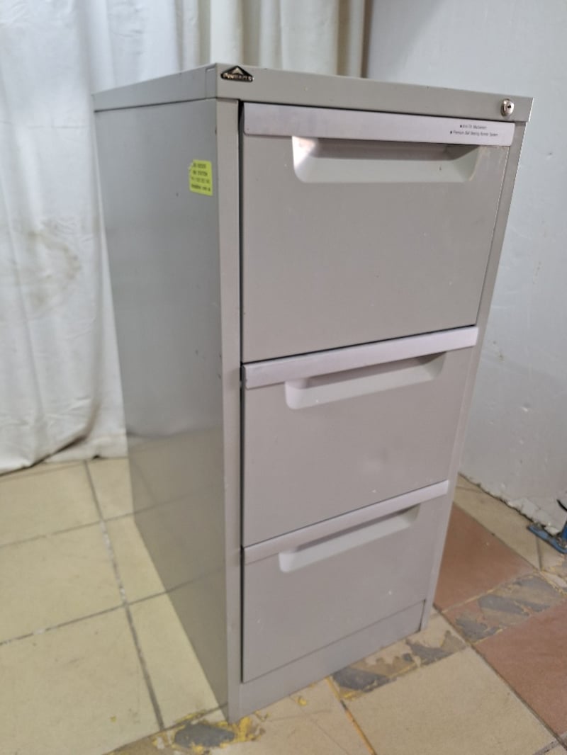 Elitebuilt 3-drawer Vertical Filing Cabinet, Metal Style, Grey Finish Dimensions H:102cm W:64cm D:47cm