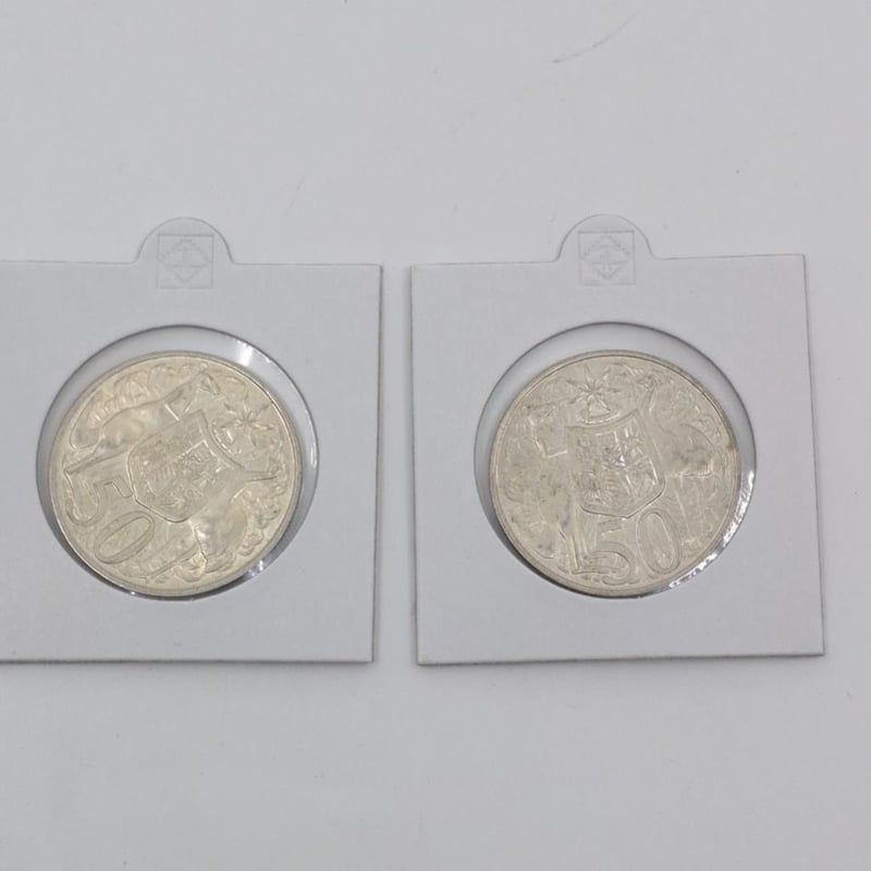 TWO AUSTRALIAN 1966 ROUND FIFTY CENT SILVER COIN. HIGH GRADE Condition: Good587689+51